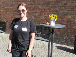 Rund 120 tandem-Mitarbeiter*innen fanden sich nachmittags ein, um bei schönstem frühherbstlichen Wetter nebenbei einen ganz besonderen Ort zu erkunden: Denn der Park befindet sich auf dem Gebiet des ehemaligen Rangierbahnhofs Tempelhof. Heute kann hier eine einzigartige Verbindung von alter Bahntechnik, wild gewachsener Natur sowie Kunst erlebt werden. Wer hier spazieren geht, findet zwischen Sträuchern und Bäumen alte Gleise, Wasserkräne, Lichtmasten, eine Dampflokomotive und eine der ältesten Drehscheiben Deutschlands.