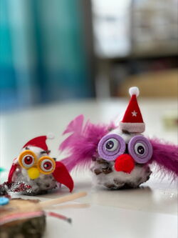 Für die jüngeren Klassen bietet sie vielfältige Möglichkeiten an, sich kreativ auszudrücken: Seifen und Kerzen herstellen, Bilder kleben, Taschen und Kissen nähen, T-Shirts bedrucken und vieles mehr. Bei unserem Besuch basteln die Kinder gerade Weihnachtsengel für den Adventsbasar. Die meisten Schüler*innen sind regulär einmal die Woche im Näh- bzw. Kreativunterricht. Spätestens zu den Märchenprojektwochen im Februar haben dann wirklich alle Schüler*innen die Möglichkeit, in die Werkstatt zu kommen. „Wir machen hier eigentlich alles, was Spaß macht. Auch mal Malen nach Musik.