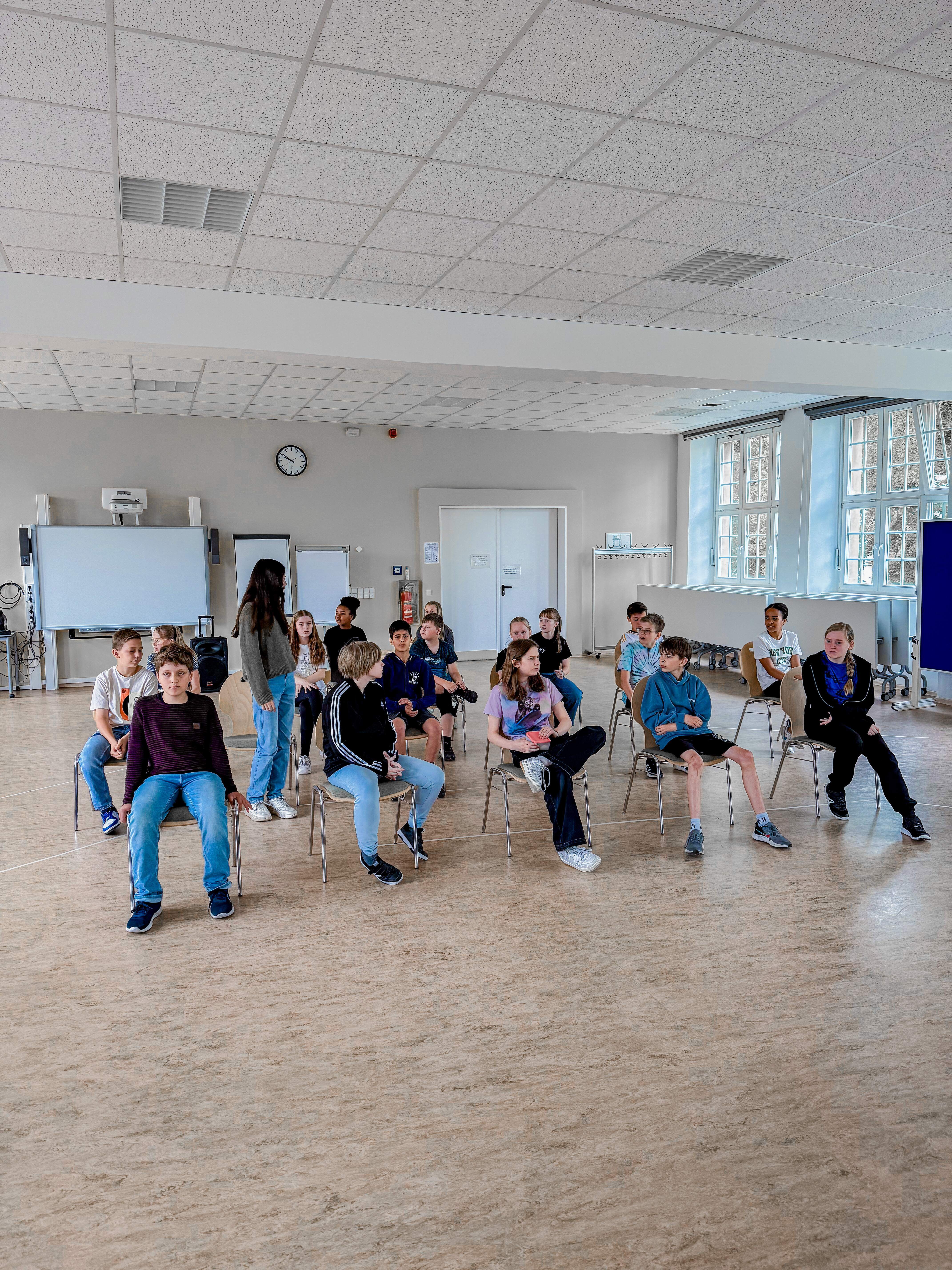 Unter der Anleitung des Projektteams, bestehend aus Wendy Kamp, Sebastian Achilles und Robert Neumann wurden die Rollen sorgfältig verteilt, um sicherzustellen, dass jedes Kind die Möglichkeit hatte, seine*ihre Stärken zu zeigen und sich aktiv in das Projekt einzubringen. Gemeinsam spielten sie eine Klasse, die entdeckt, dass es Konflikte innerhalb der Gruppe gibt und diese Ungerechtigkeiten aufarbeitet. Dadurch wurde den Schüler*innen nicht nur theoretisches Wissen vermittelt, sondern auch praktische Handlungsmöglichkeiten aufgezeigt, die sie selbst in ihren Alltag integrieren können.